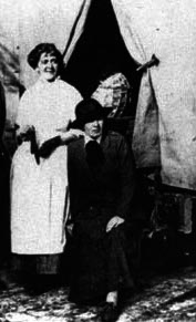 Hamilton sitting behind an ambulance; in the white coat is Miss Ivens, the Surgeon-in-Charge at the Scottish Women’s Hospital at Royaumont.